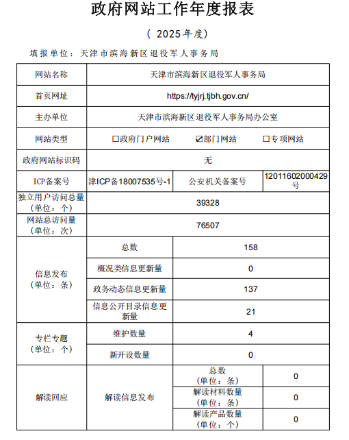 天津市滨海新区退役军人事务局政府网站工作年度报表(2025年)